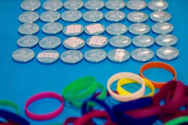 印着“跑出勇气”、“天生勇气”的胸章和手环非常受欢迎