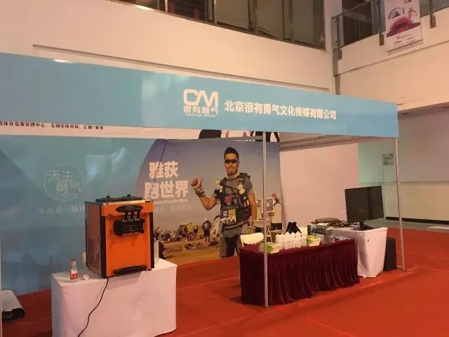 这次无锡马拉松,“天生勇气”在博览会有展位,同事早已准备好冰淇淋机,还有些小纪念品,发给无锡马拉松的参赛选手。他因为要拍摄纪录片,实在是无暇分身帮忙,心里边多少有些愧疚,但看到大家还能应付的过来,他多少放下心来!