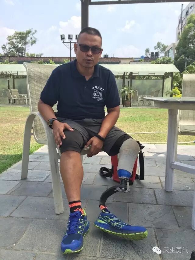 珠峰马拉松从海拔5000多米的珠峰大本营南坡昆布冰川出发,终点设在南池巴扎,全程42公里,虽说与普通的马拉松距离相同,路线也为一路下坡,但因为超高的海拔,以及沿途路况的复杂,珠峰马拉松并不是那么容易完成。珠峰马拉松的宗旨也并非竞技,因为比赛地点的独特和象征意义,来到这里的跑者的目的都不“单纯”。2016年珠峰马拉松就迎来了一位特殊的选手,他跟所有人都不同,皮肤黝黑,身形壮实,头发极短,能看见发亮的头皮,当顺着腿往下看,会发现他的左小腿是一根弓形的假肢。他是来自新加坡的Shariff。