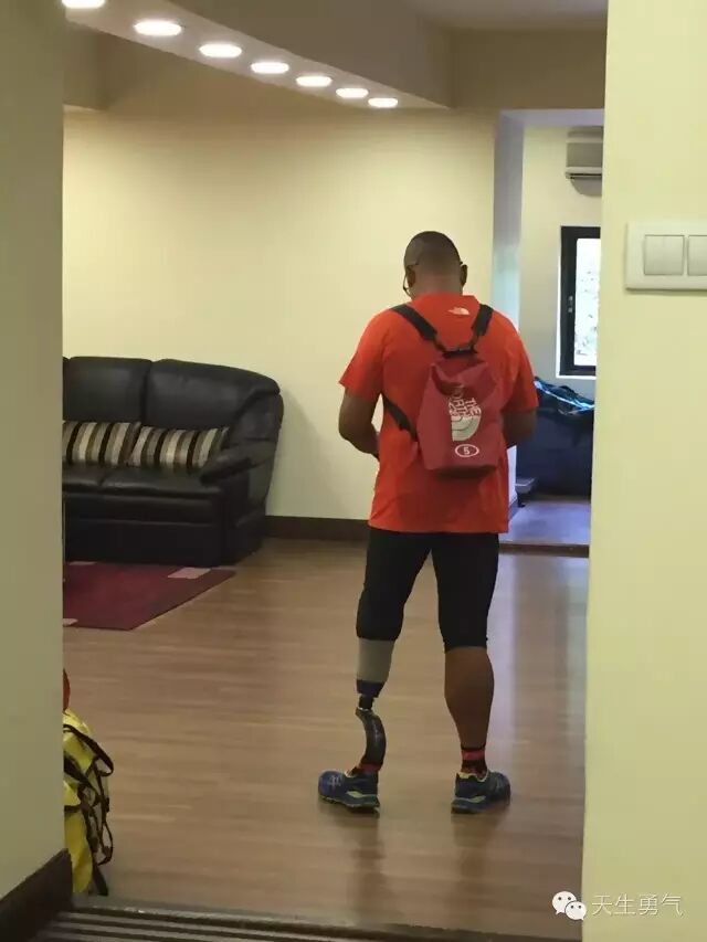 如果你是个残疾人,无论在一个三观有多正的国家,你都永远别想像一名正常人一样生活。Shariff小时候就没有左腿,这让他从小就成为了小伙伴们严重的异类。挖苦,排挤,嘲弄,其实小学生的世界远没有我们附会的那样清澈。童年对于Shariff来说并不是美好的,相反,它是“艰苦”的(Shariff特意用了tough这个词,正如他形容珠峰马拉松的单词一样)。仅仅是在小学期间,他就转了6次学,每一次转学都是新的开始、隐忍、直到不能忍。那时,Shariff觉得没有左腿的自己,就是一个异类,因此他的整个前半生只做了一件事:伪装。成年工作以后,他永远穿着长筒裤,学习模仿正常人走路时候的样子;找工作的时候,他和老板说自己身体健康——直到多年辞职以后,老板也没有发现任何问题;和弟弟在街边卖椰浆饭的时候,他更要伪装成正常人,原因很简单:对于普通顾客,同样是椰浆饭,为什么一定要买残疾人卖的呢?为此,他甚至试过自杀。直到2012年,37岁的Shariff正在建筑工地做安保,却惨遭工伤,左腿突然刺痛,被紧急送往医院,最后医生诊断不得不再次截肢5英寸。在医院的几个月或许是Shariff一生中最难熬的时光,因为从那儿之后,他学会了坚强。一天晚上,他猛然在电视上看到了伦敦奥运会田径赛场上,飞奔的南非刀锋战士勇往直前!