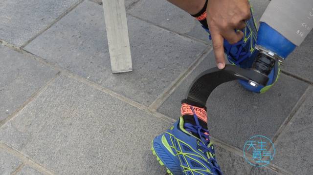 Shariff盯着自己假肢脚上的Compressport袜子,已经有很多朋友问过他,“既然您这条假肢,既然都没有脚没有触觉,为何还要穿上袜子呢?”