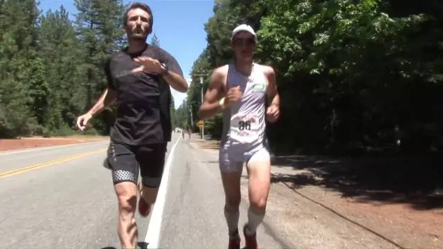 在60公里补给站,K天王用绷带固定住脱臼的肩膀,然后继续出发,到90公里的时候,Joe Grant赶了上来。K天王的肩膀很疼,每到补给站就会重新固定,看他单手拄杖,跟Joe一起跑的画面,却还是一脸笑容。