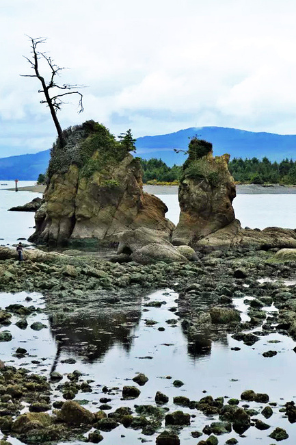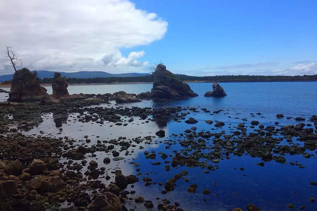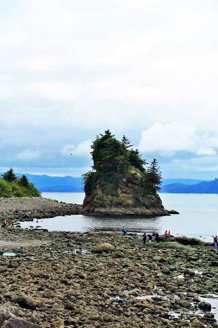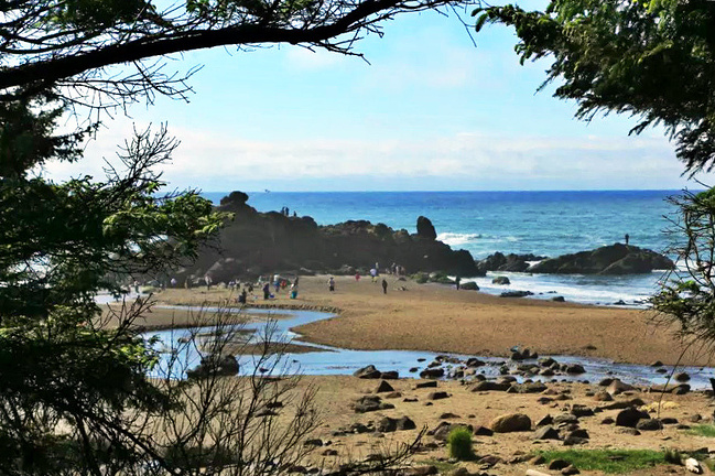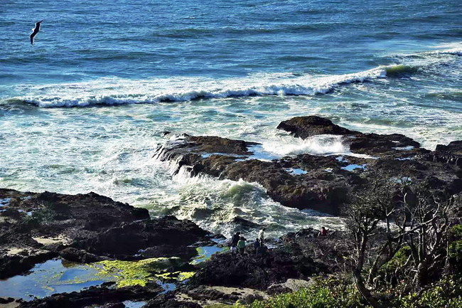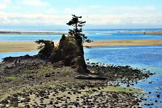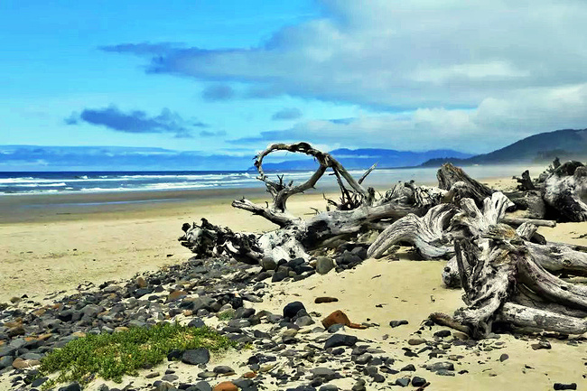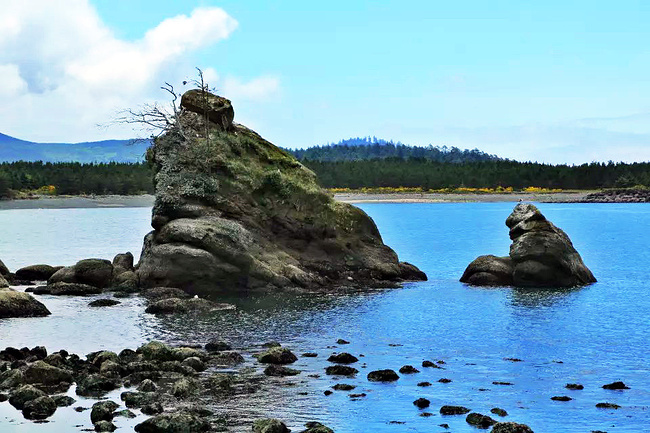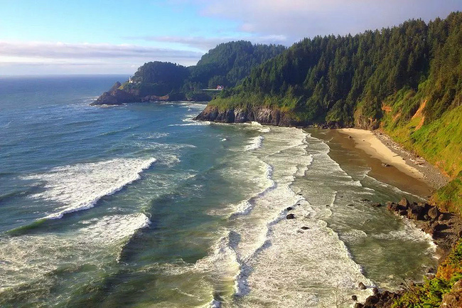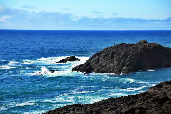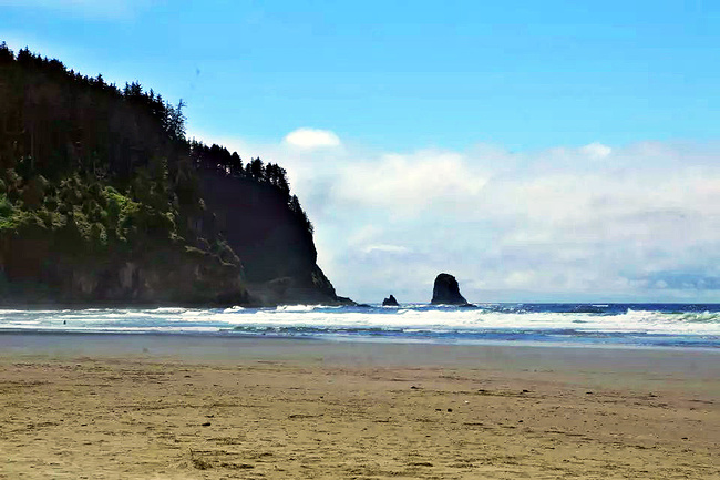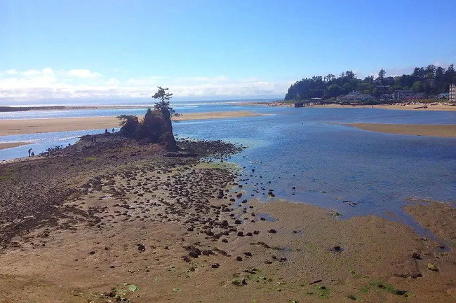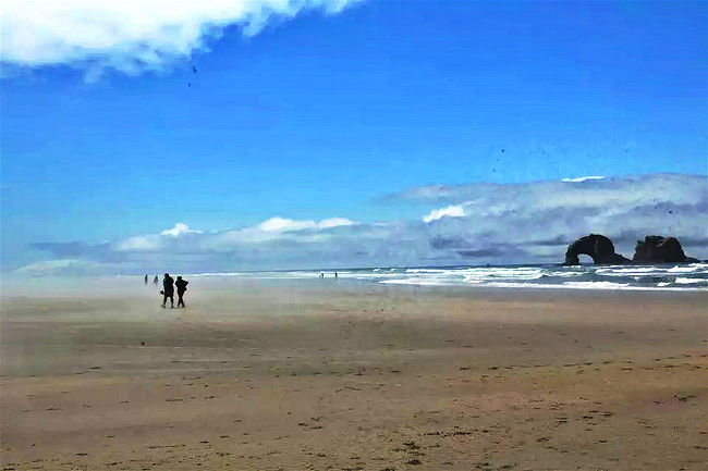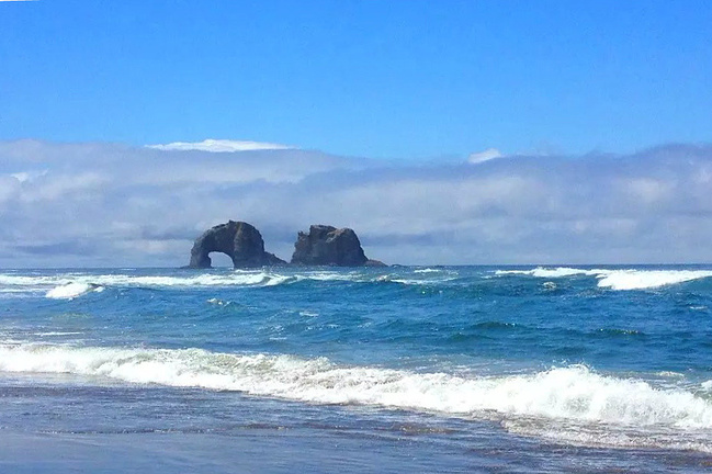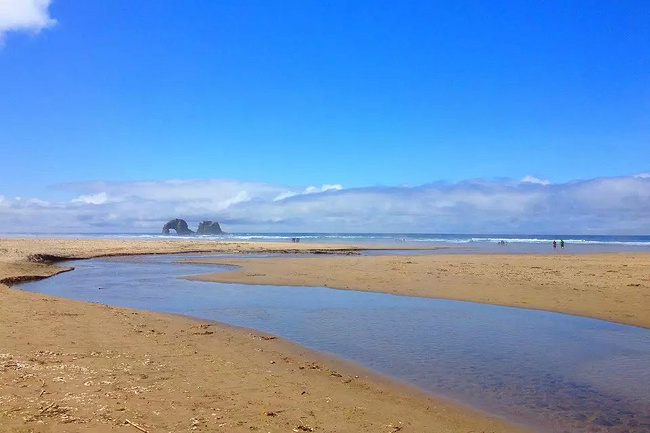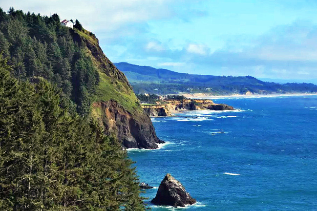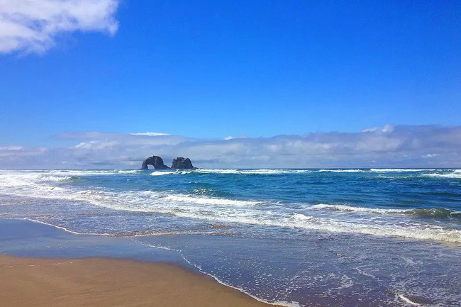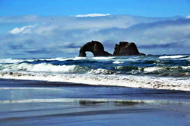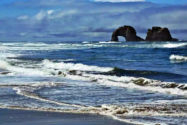 继续往前,可以说是美景迭出,目不暇接。先后经过有着“小苹果”之称的海滨度假胜地曼扎尼塔镇,有着悠久伐木历史的尼黑勒姆河口的惠勒小镇,接着来到独一无二的经常能在俄勒冈州海岸明信片上看到的那著名的双岩石美景,波涛万顷的大海中间兀然挺立着两块相连的如山巨石,一块似坚强磐石,一块像宽阔拱门,其形其势,可赞可叹。拐过弯来旁边就是加里波第,这里由海湾形成的内湖中散落着星星点点形态各异的岩石,拟人似物,栩栩动人。碧蓝的幽水映衬着丰富的石型,仿佛进入了一个童话乐园。还没来得及等你从陶醉中醒过味来,紧接着又到了三个海角景观区:瞭望角公 园以及和它相邻的基万达角和米尔斯角,这里是另一番原生态的景象,此起彼伏的沿岸山脉,延绵不绝的细沙海滩,一望无际的茂密雨林,都能让你在震撼于神奇大自然的同时,也品味和感受到古老岁月留下的沧桑。