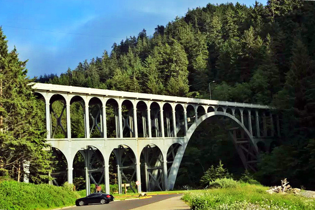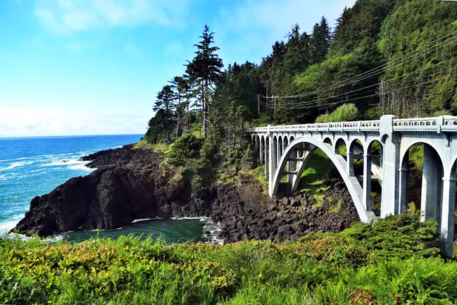 美国西海岸风光无限,沿岸从北到南依次分布着华盛顿州,俄勒冈州和加利福尼亚州。其中北面的华盛顿州有出名的长滩,奥林匹克国家公园秀丽天下;而南端的加州更是风景秀丽,除了也有一个与北面齐名的长滩,更有天下无双的17英里景区和红木国家公园。唯有夹在中间的俄勒冈州这段海岸不显山不露水,既无长滩,又无国家公园,长期处于不冷不热,不温不火的状态,不说默默无闻,也是名气不大。我对这里的认识缘于两年前的一次邂逅。那是一次经过精心准备的西行美国101号海岸线的旅行。由于行前看到的所有资料都毫无例外地将加州旧金山至洛杉矶这段列为最美海岸线,所以也就人云亦云地把俄勒冈这段忽略为路过。直到行至此段才蓦然发现,即使是匆匆路过留下的掠影就已经让人惊喜不断,惊叹连连。然苦于既定行程无法停留,只能有待于以后续缘。这次能旧地重游,毫不犹豫就专程安排了这次俄勒冈海岸行。尽管已经对这里的美丽有过初印象,但待到真正游览下来,俄勒冈海岸线的美丽富饶,它景观的丰富多彩,它景点的美轮美奂以及它景致的惊世骇俗,仍然让人叹为观止。