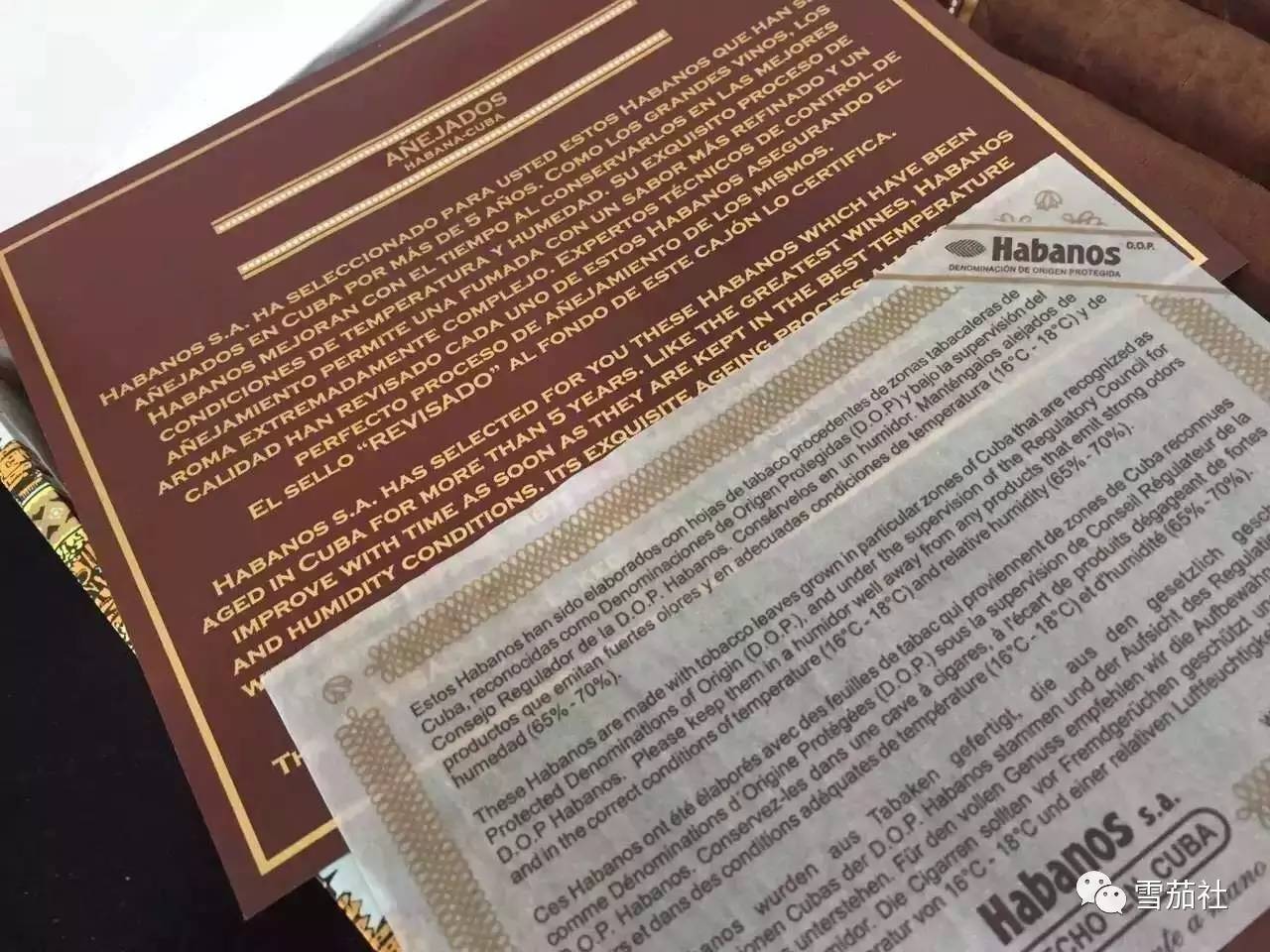 与其他限量版雪茄相同,陈年雪茄也都额外带一个腰花,标注上“哈伯纳斯陈年”。