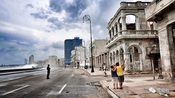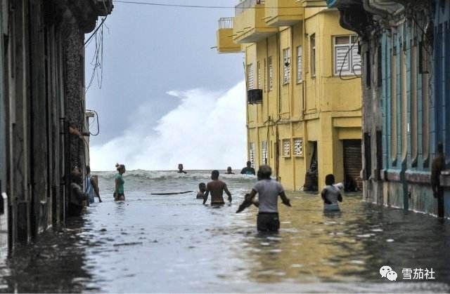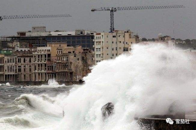 上个月9日飓风开始从古巴中部向西北一路肆虐,一天一夜,将加勒比海的海水倾泻到古巴首都哈瓦那著名的滨海大道海墙内,哈瓦那北部海滨变为一片泽国。飓风带来的汹涌海水开始猛烈撞击海墙,将大片碎浪抛向空中,洒向街道,天空一片迷蒙。