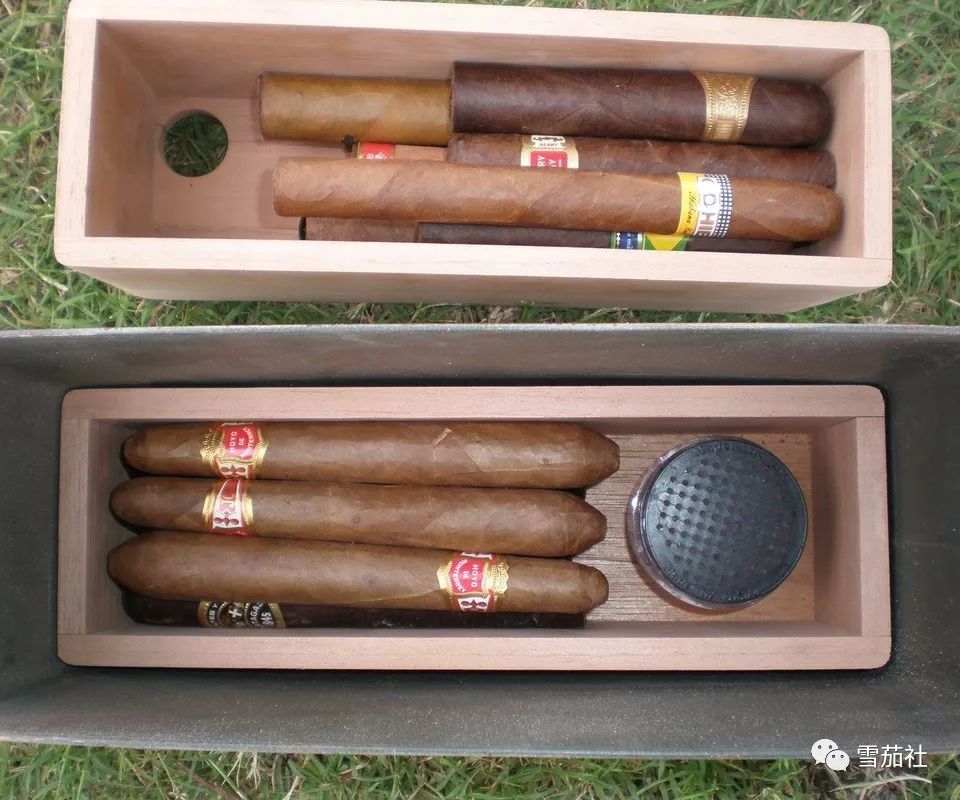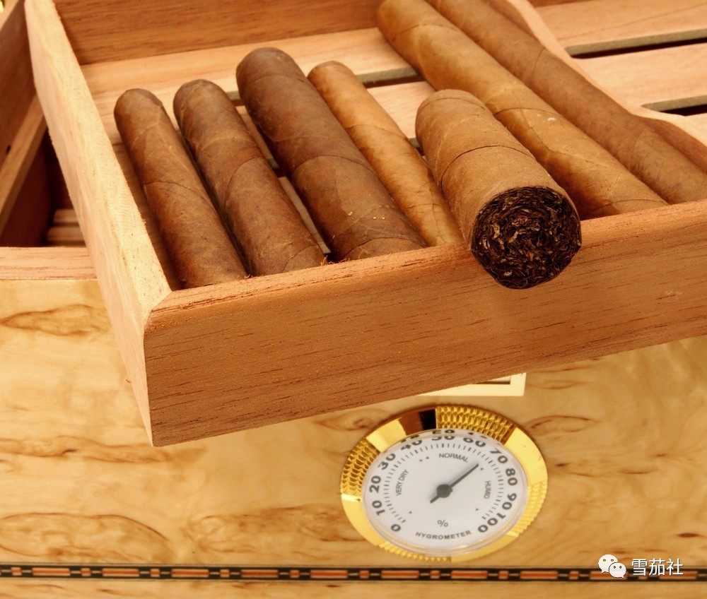 1. 把充满蒸馏水的小酒杯或其他加湿设备放置在雪茄盒的底部。