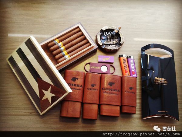 先来看看战利品吧!我总共买了两款雪茄,较细的20支,较粗的有5支,木盒和牛皮盒是另外买的,还有裁雪茄刀,烟灰缸和打火机是在机场用剩下的古巴钱买的。