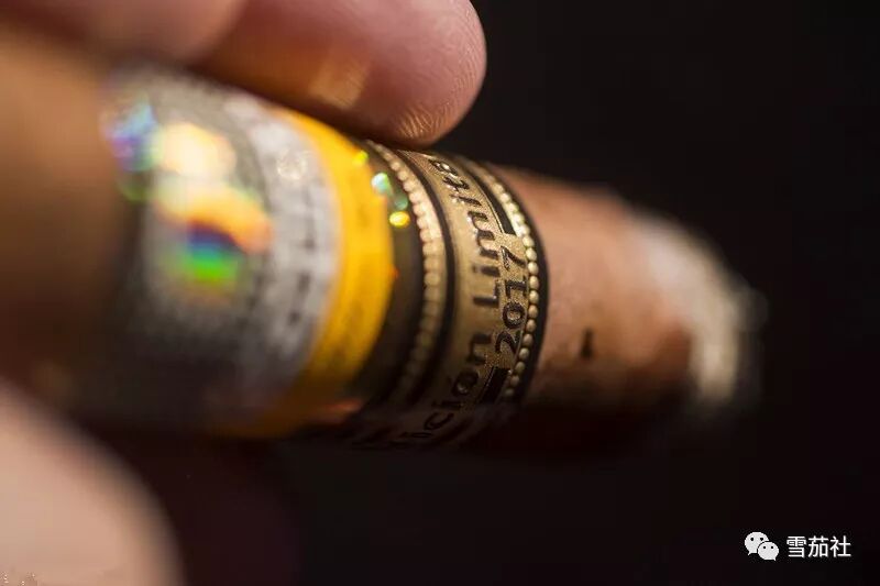 这款雪茄是2017年2月份宣布即将出品,直到去年11月份才最终面世。高希霸护身符2017年限量拿在手上,会让你感觉特别厚重,令人惊喜的黑巧克力棕色茄衣,“猪尾巴”的茄帽,十根雪茄包装在滑盖的雪茄木盒中。