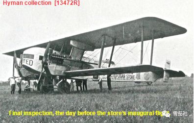 在这张照片上,特纳将一盒香烟递给一位时髦的年轻美女手上,她们都是慕名而来观看这架当时最大的飞机。特纳当时身穿整齐的飞行服,穿衬衣戴领带是美国雪茄公司的财务长,他陪同进行整个巡游活动。注意一下,飞机旁边依靠或者悬挂着很多烟草广告,它们都可以随时拆卸。
