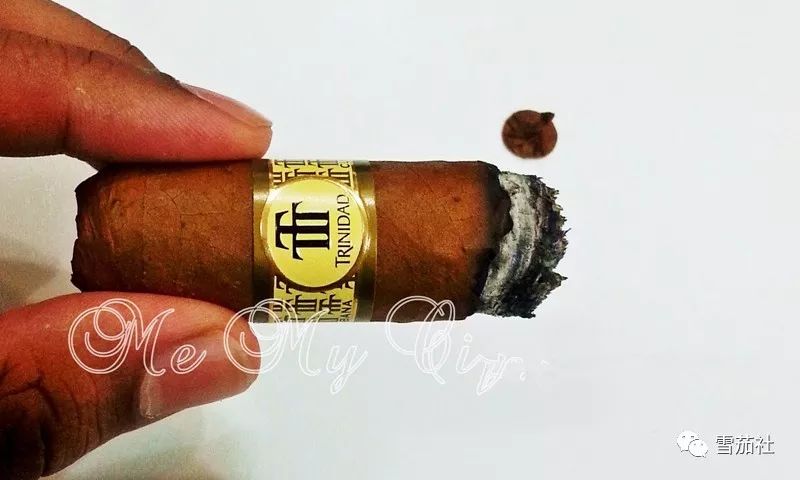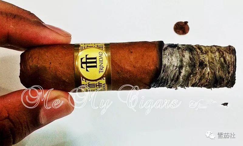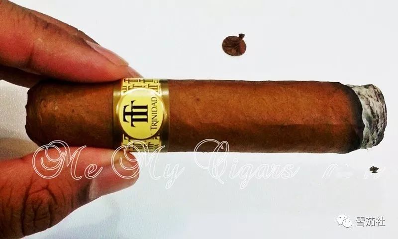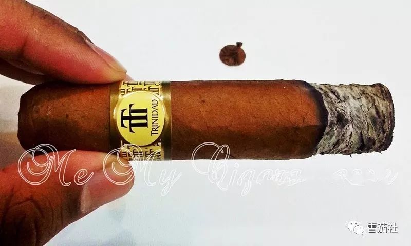 刚开始几口就能鉴别出典型的特立尼达雪茄味道,一些烤坚果味、泥土味和一些丁香的香味。燃烧线还算平整,但是有时有一些波浪,可能是因为雪茄过于年轻的原因。雪茄烟雾量很大,香味十足。