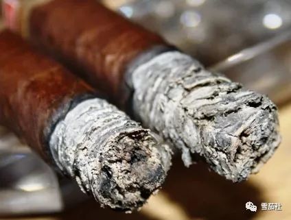 烟灰颜色类似,但是湿雪茄的烟灰保持较好,能坚持更长时间不掉。正常的雪茄燃烧出的烟灰保持两厘米之后迅速脱落,但是湿雪茄保持更长。