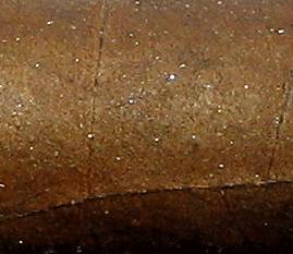 相信有保养陈年雪茄经验的雪茄客都有看过雪茄结晶,到底甚么是雪茄结晶? 当雪茄在一个非常理想的环璄下保存一段时间后,雪茄烟叶中天然的油分会从内慢慢渗出茄衣上,而当那些油分遇到空气后就会结晶,凝固并依附在茄衣上形成白点。下图是放大的雪茄结晶相片,可以看出雪茄结晶呈圆点的粉末状。