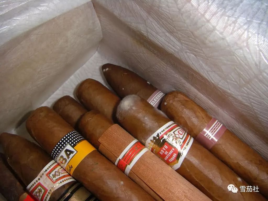 如何区别雪茄结晶和雪茄发霉雪茄发霉就像一般东西发霉的原因一样,因为环境过于潮湿导致霉菌活跃起来引致发霉,一般当相对湿度高于80%很大机会会导致雪茄发霉。发霉的颜色有很多种,除了常见的灰白色之外,还有浅黄色、绿色、甚至浅蓝色。所以当看见颜色异常的话那非常肯定是发霉了。