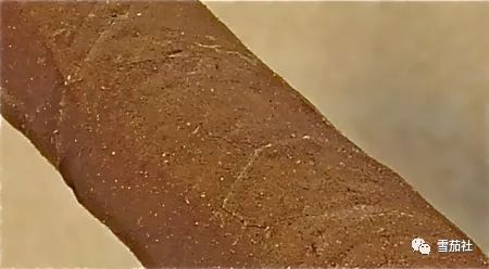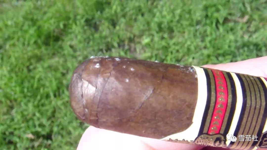 当雪茄出现结晶时,代表雪茄曾在一个十分理想的湿度温度下保存了一段时间,而在这段陈年的过程中雪茄也经历了醇化,是非常好的现象。需要注意的是很多时候雪茄结晶不会平均地在茄衣上形成,而只是在雪茄的局部地方形成。下图的雪茄就只有右边形成了结晶。