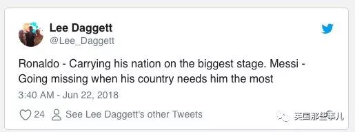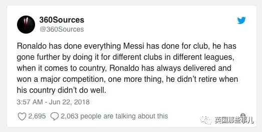 “C罗,世界杯上一人扛起全队往前冲,梅西,当这个国家最需要他的时候,他失踪了”