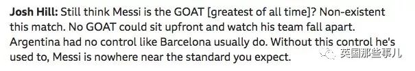“还认为梅西是历史最佳吗?反正我在这场比赛上是没看出来。