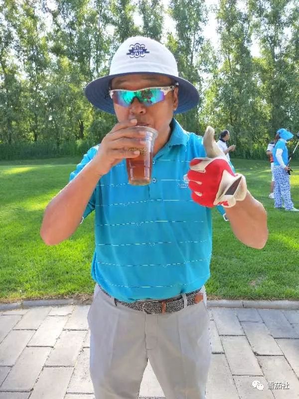 天气炎热,东方天星高尔夫球会贴心地熬制绿豆汤,送到场下每个队员手中。