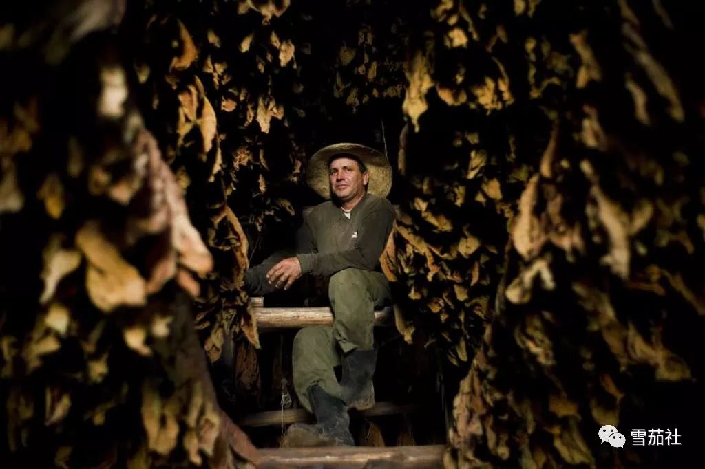 接着,从地里面收割回来的烟叶,需要先放入晾晒房中,一串串烟叶挂起来,通过自然风干的方式,烟叶的叶绿素变成叶黄素。在这个转换过程中,如果由于烟叶有部分虫害、磕坏或者撕裂等原因,造成叶绿素没有完全转化成叶黄素,就可能在雪茄燃烧过程中造成不充分燃烧,影响烟灰的颜色。