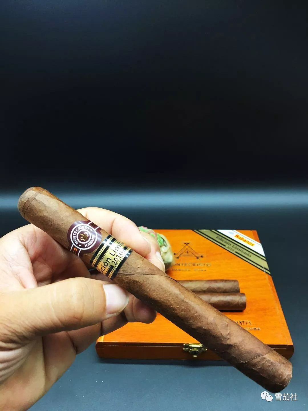 茄衣比蒙特二号颜色深,未点燃就能闻到干草味、雪松木,还带着厚重的巧克力味。