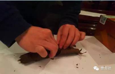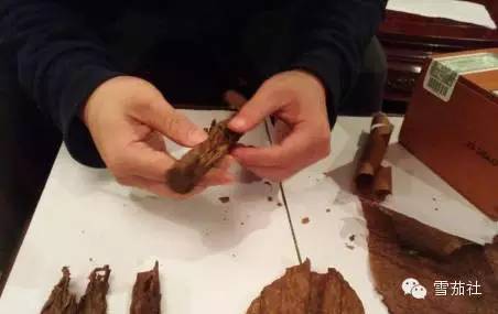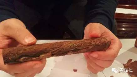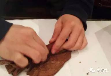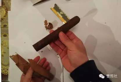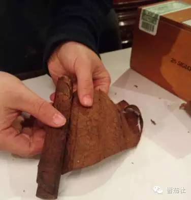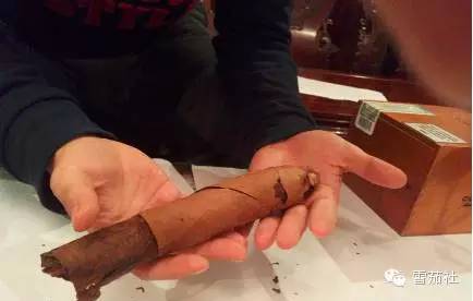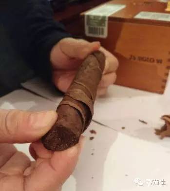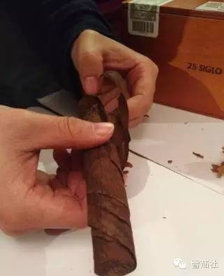 左右手扭转,原来紧致的雪茄显现出卷折的缝隙。