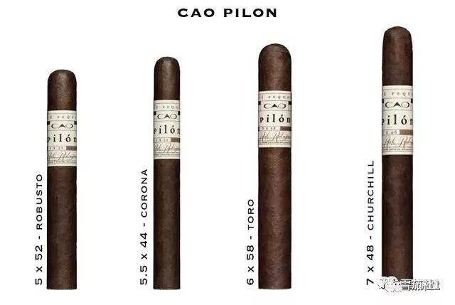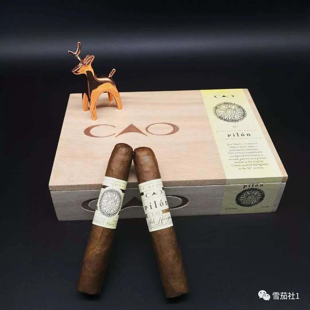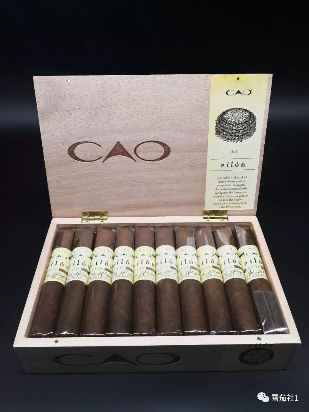 CAO雪茄品牌每个系列都在推陈出新,在研究了19世纪古巴烟草发酵技术之后,对其中叠塔(pilon)技术非常感兴趣,并决定以它的名字命名一款系列雪茄,包含三个尺寸:皇冠、罗布图和丘吉尔款。这三款雪茄于2015年发布。