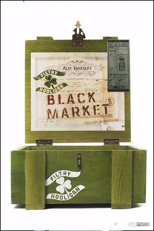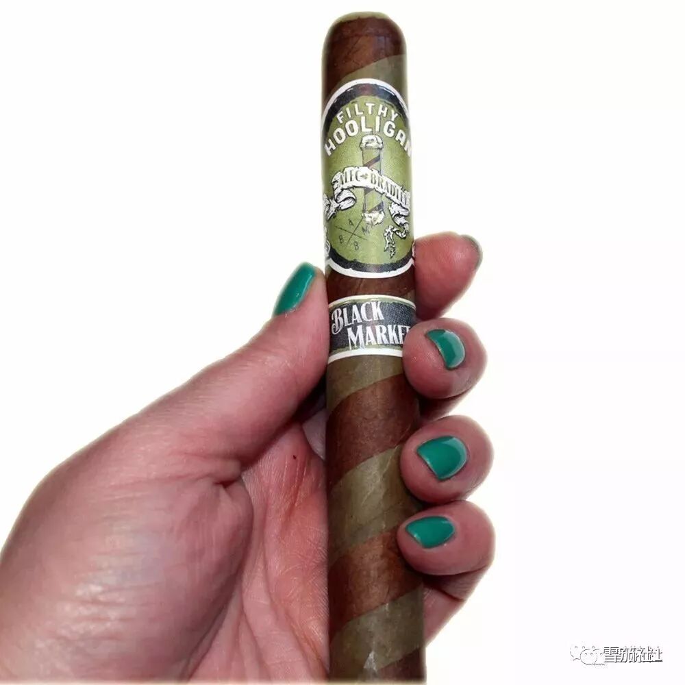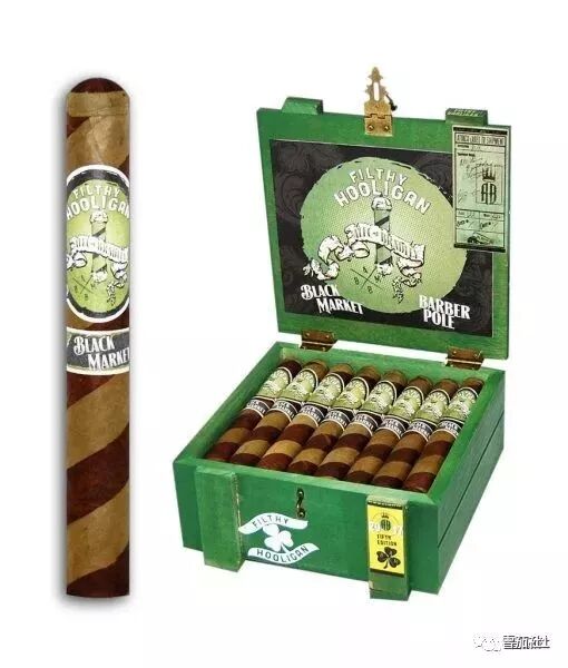 这款雪茄名为黑市肮脏的流氓,颜色取自圣帕特里克节的显眼绿色,茄衣交错两种颜色,制作成类似蜡烛外形。