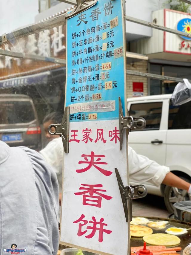 小车的一面挂着各种组合的价格,加蛋加肠加鸡柳,随便你怎么组合,老板是夫妻俩,一个做饼一个打包,衔接流畅,默契满分。