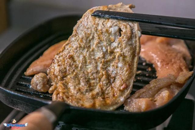 用手悬空感受一下温度,温热时下入鸡胸,煎至两面金黄。