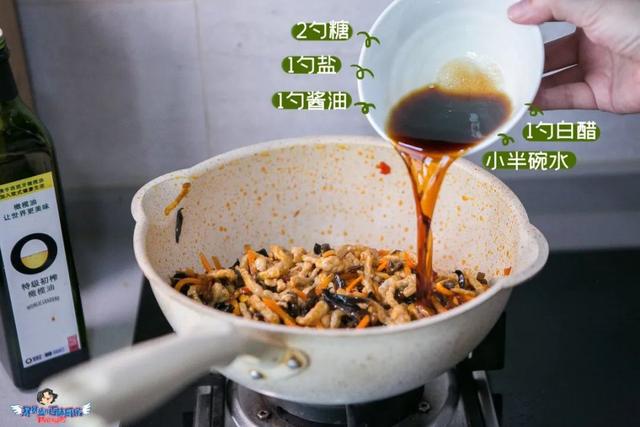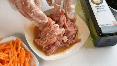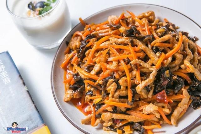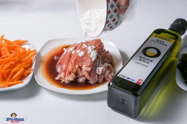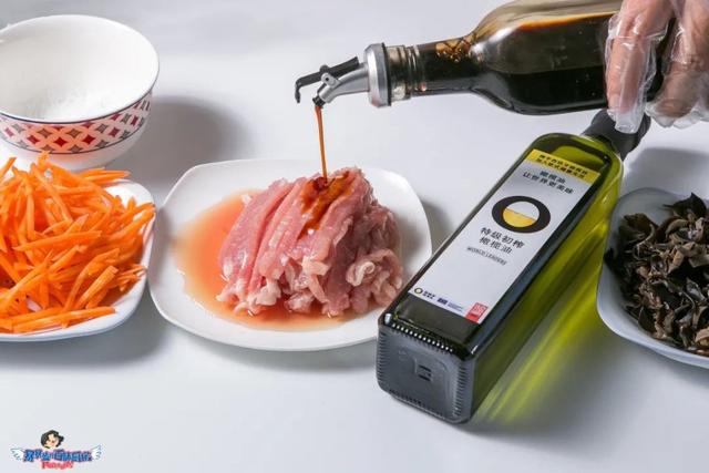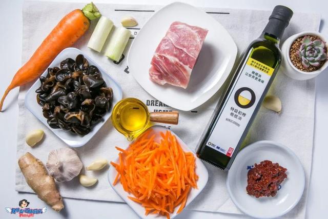 里脊肉切丝,胡萝卜切丝,黑木耳切丝,葱姜蒜切末。肉丝用料酒、酱油和淀粉腌制10分钟。