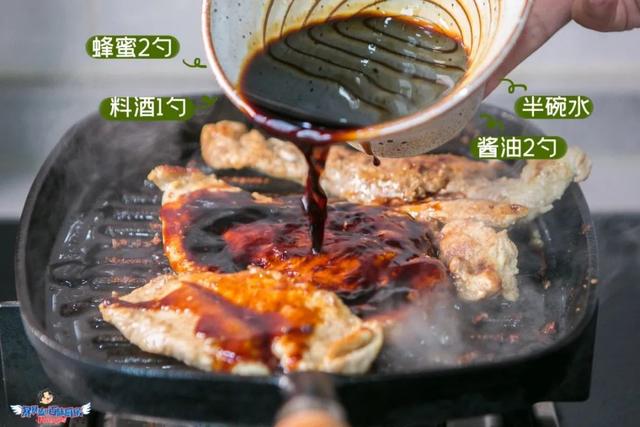 调个照烧汁备用:蜂蜜2勺+料酒1勺+酱油2勺+半碗水