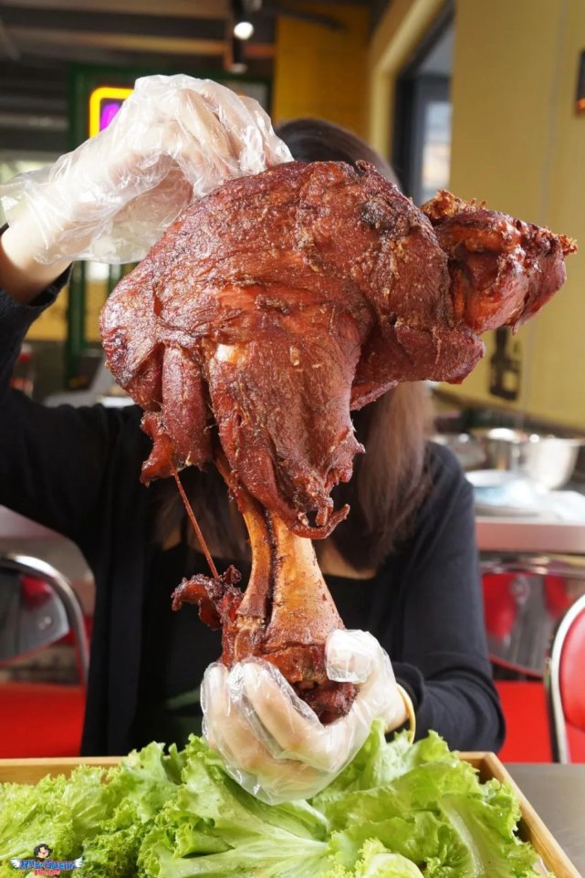 一整个烤的牛小腿你们吃过吗?足足5斤,我瘦小的胳膊还没它骨头粗!