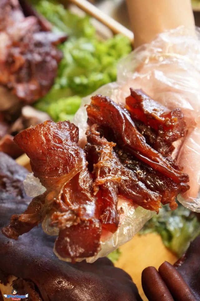 这肉厚到一刀下去切不尽,真不愧是草原上长大的牛,厚实!牛腿肉烤得刚刚好,一丝一丝的,外酥里嫩,每一口都沉浸在肉的世界里幸福满满。