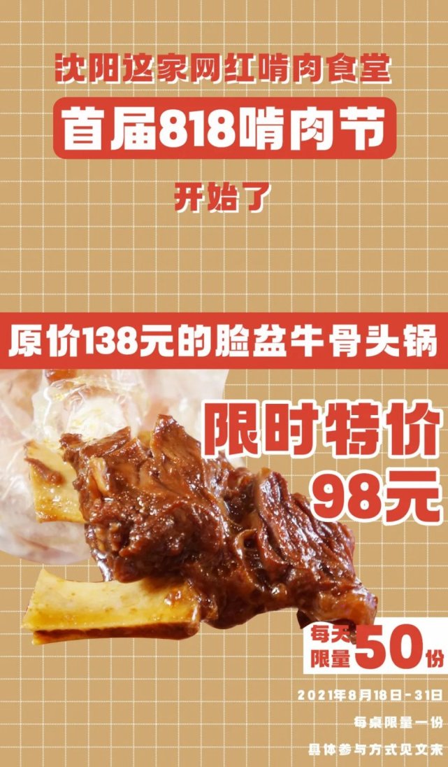 首届818啃肉节开始!50份网红脸盆牛骨,限时抢!
