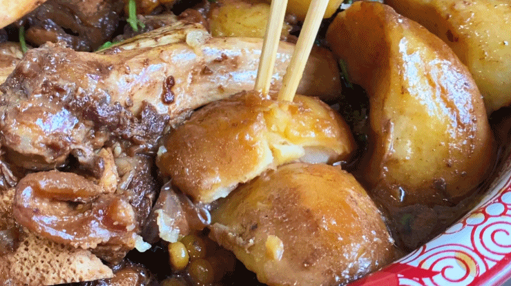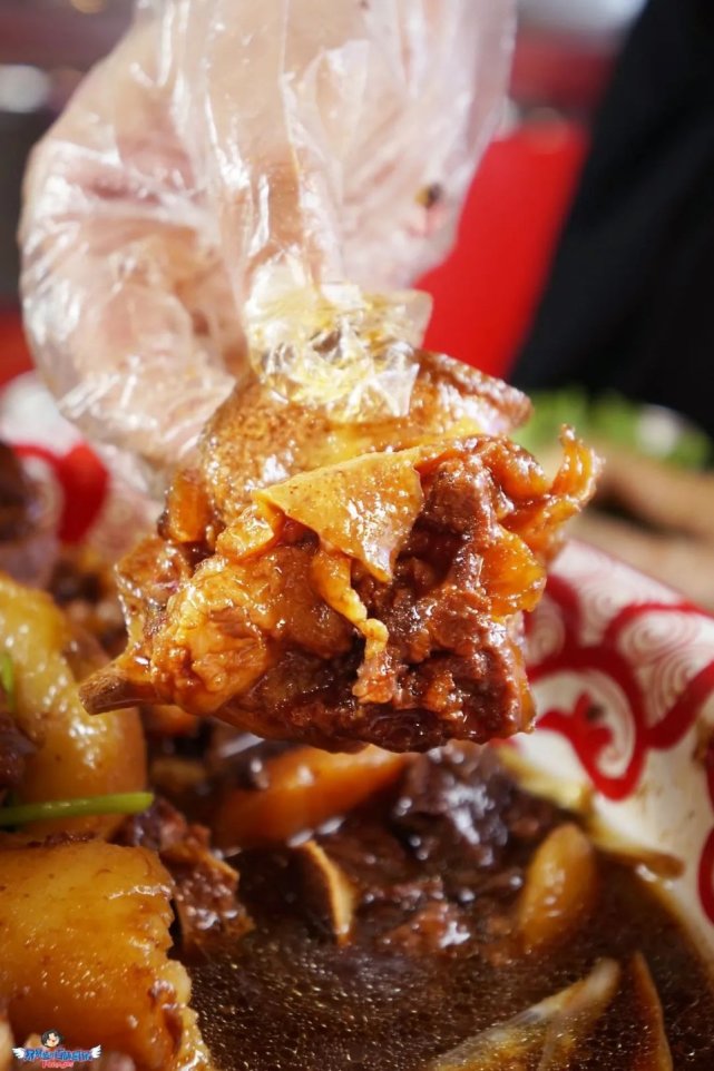 瞧瞧,每一根蹄筋都油亮发光,皮和肉之间淌着肉汁,说话瞬间口水都要流下来了!连着筋,带着锅,戴上手套,抓起大牛蹄,啃的姿势要野性霸气,吃起来才更有味道,开造!