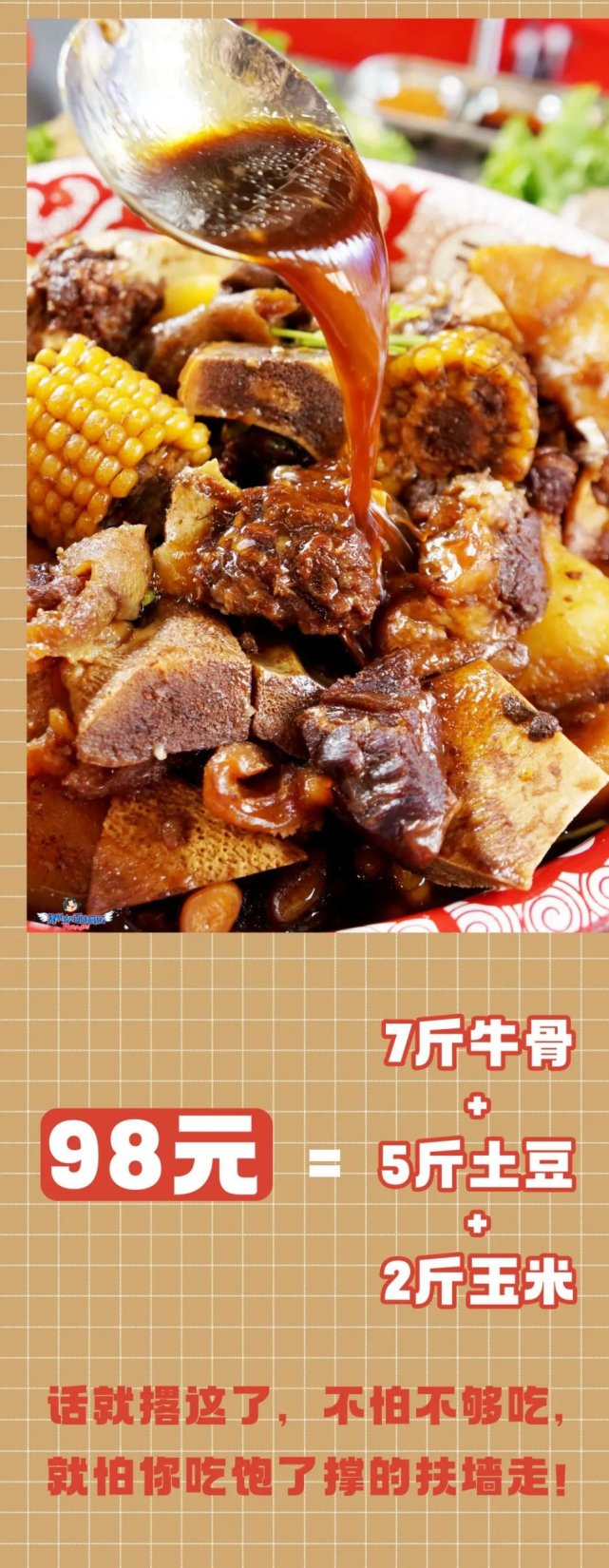 7斤牛骨,5斤土豆,2斤玉米