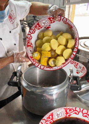 土豆炖得翻沙,一夹就断一抿就化,果然耙土豆无论到哪都是YYDS!玉米甜糯,上嘴先吸汁儿后啃粒儿,我是在吃牛肉味的玉米吗,老香啦!