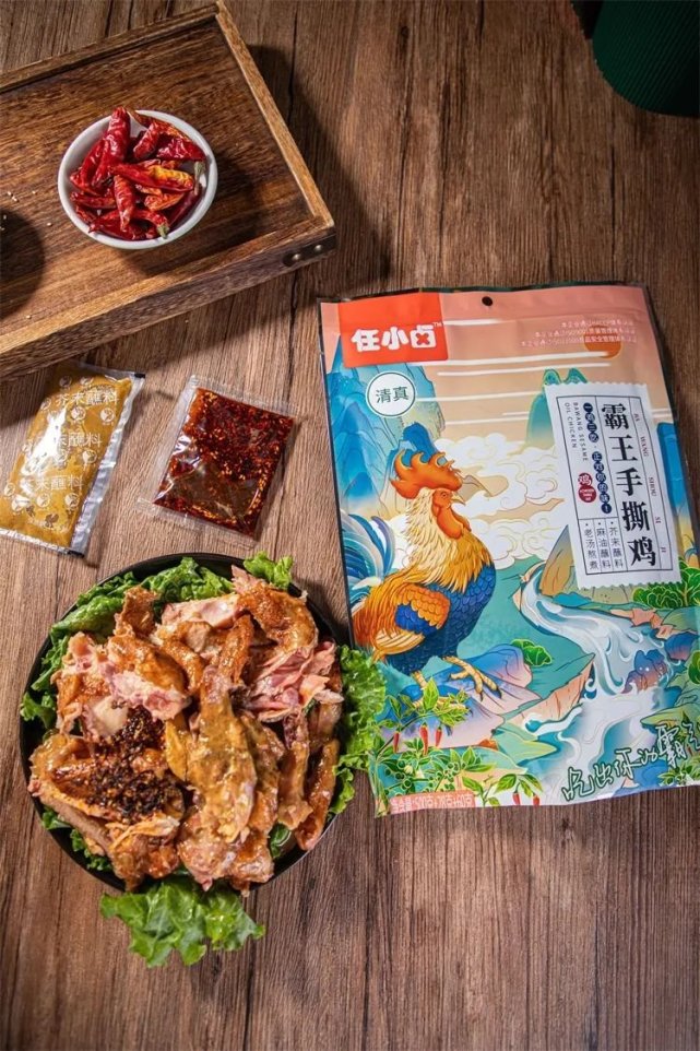 任小卤的手撕鸡首先从包装上就是第一个满分项。不同于其他手撕鸡土特产风格的潦草包装,他家的这款包装讨喜,送人也倍有面儿。