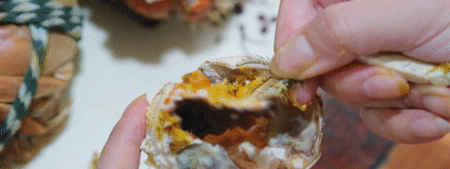 喜欢原汁原味品尝新鲜河蟹的,直接上手啃!