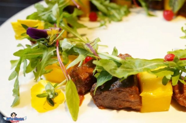 慢煮牛舌搭配清新芒果竟然意外地讨喜和谐,牛舌入口又软又嫩,有舌吻的feel了。
