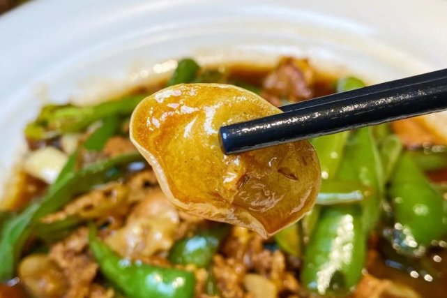 肉香来自肥瘦相间的猪前腿肉,油绿软熟的螺丝椒还保留着恰好的脆度,最加分的还得是加入了兔耳菌,吃起来像白木耳般弹、像软骨般脆。