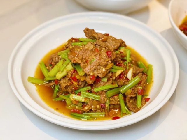 印象最深地应该是黄牛肉的口感,独特的烹饪方式将鲜美的肉香发挥地淋漓尽致,搭配脆爽的芹菜,吃起来鲜嫩满分,香辣四溢。