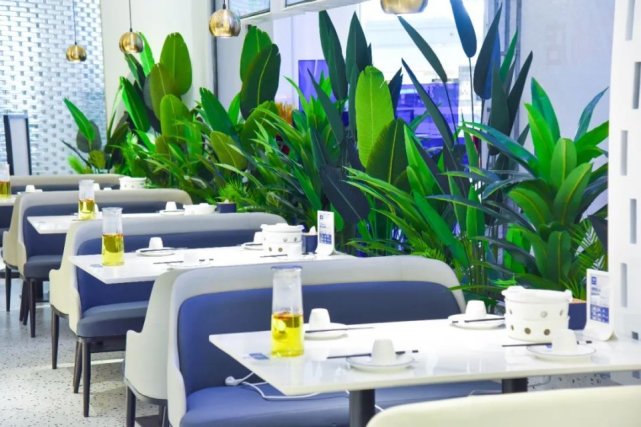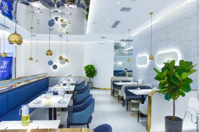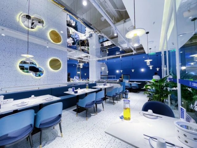 与传统的湘菜馆不同,兰湘子在环境上化繁为简,以一抹绅士的蓝色为主色调,从里到外透露着简约、时尚、透明的开放空间,在暖暖的灯光下,给人一种置身家中的温馨感觉。