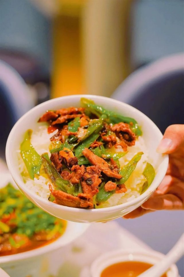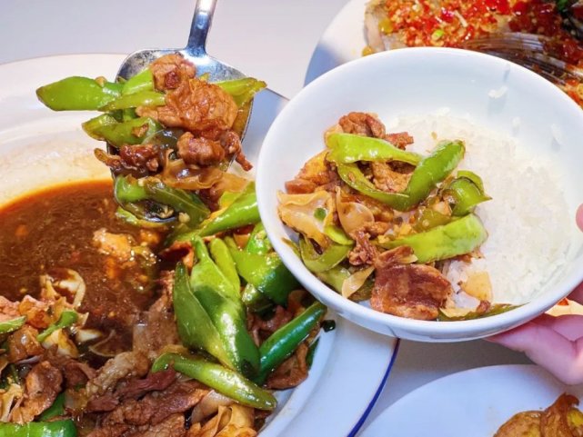 作为店里的招牌必点,金牌辣椒炒肉只油一沸,拿勺子那么一翻,顿时香辣的气息就直冲鼻腔深处,食欲一下也到位了。