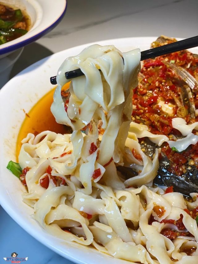 手工扯面是这份剁椒鱼头灵魂般地存在,将汤汁的美味和鱼头的鲜味尽收囊中,甚至美味盖过鱼杂的风头。