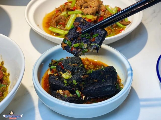 黑胚臭豆腐炸到外脆里嫩,豆腐内稀疏的孔,仿佛海绵一样吸饱了咸甜带脆的卤汁,趁热一口下去,包在嘴巴里,好过瘾!