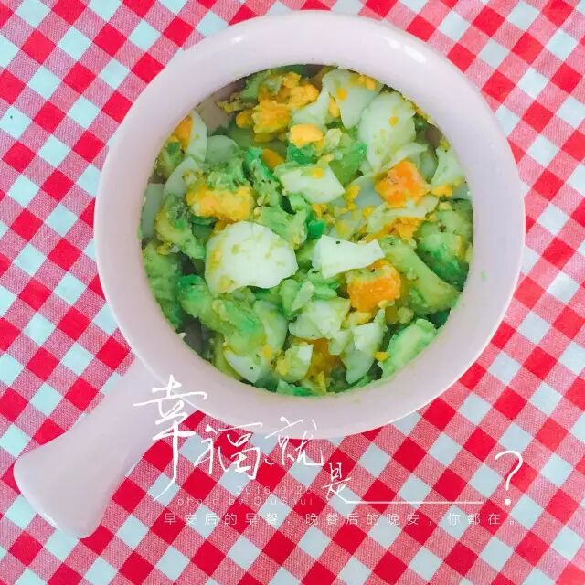 是牛油果和刚煮的鸡蛋捣碎后,加盐和黑胡椒,非常好吃。做法也简单。