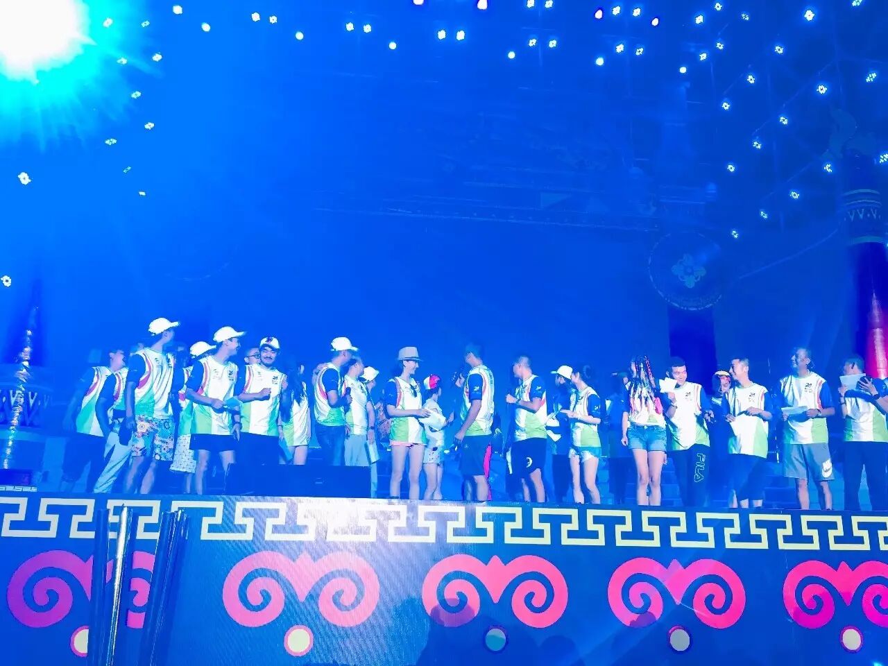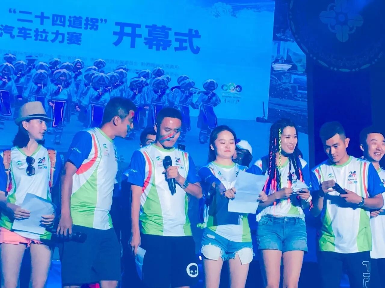 晚上,在火把节现场,赛车手们登台合唱《人生就像一场比赛》。