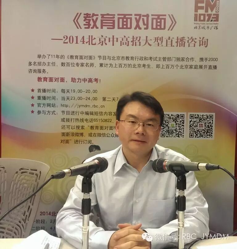 清华大学招办主任于涵 4月20日19:00——20:00在北京城市广播FM107.3、AM1026《教育面对面》特别节目——“2014北京高招咨询节目”中发布——