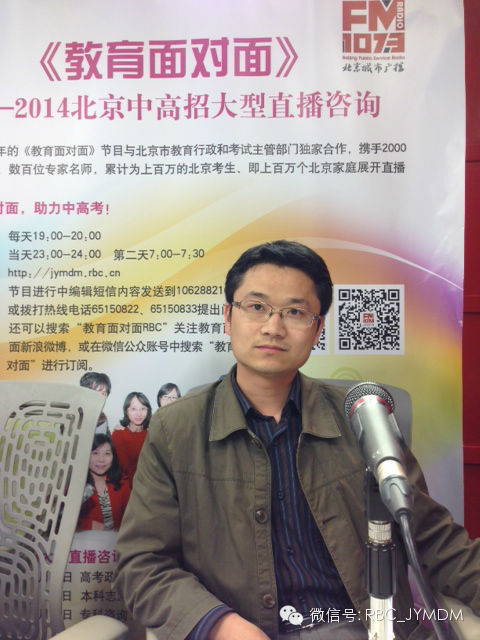 北方工业大学招办主任王宏波 4月26日19:00——20:00在北京城市广播FM107.3、AM1026《教育面对面》特别节目——“2014北京高招咨询节目”中独家发布: